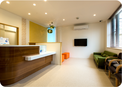 窓から見える桜の木とスタッフの笑顔で患者さまをお迎えいたします。おもちゃいっぱいのキッズスペースも完備。ゆったりとした空間でご自宅にいるかのようにリラックスしていただけます。モニターを使用して院内勉強会や患者さま向けセミナーの会場にもなります。